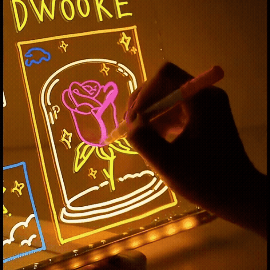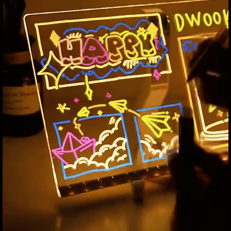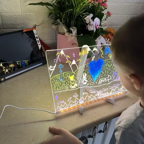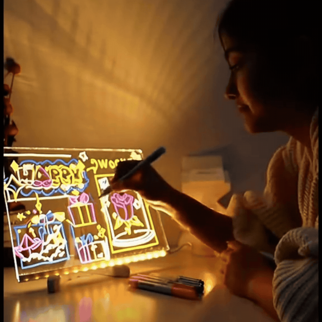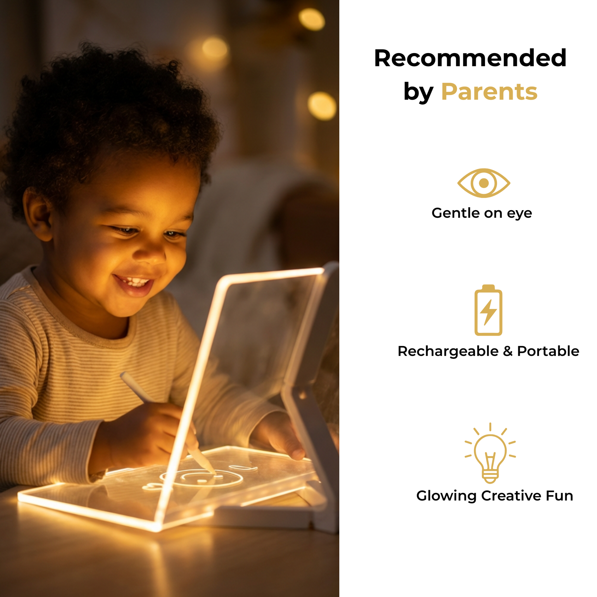 GlowFun Board is rechargeable and designed for multiple creative sessions on a single charge, depending on light mode and usage.