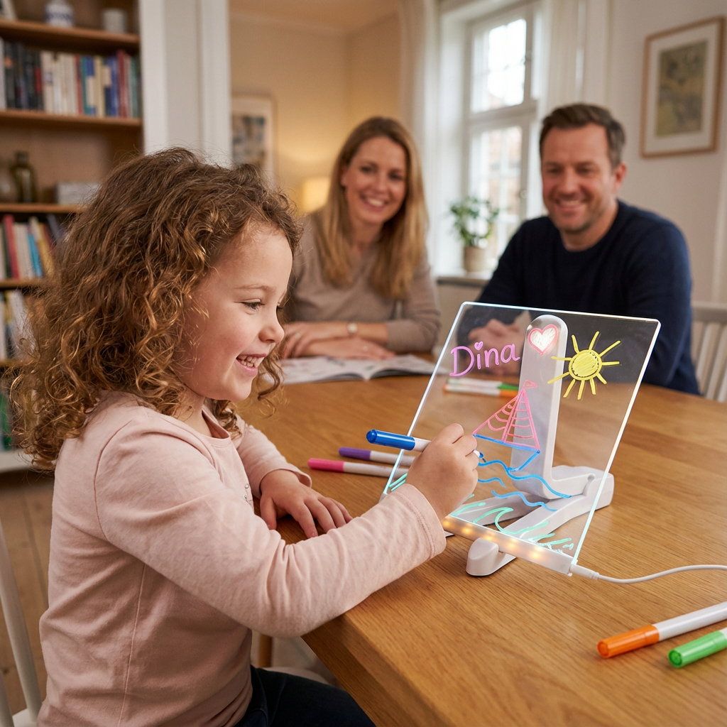 The LED light is designed to enhance drawings, not replace a room light. It makes artwork glow beautifully, especially in low-light settings.
