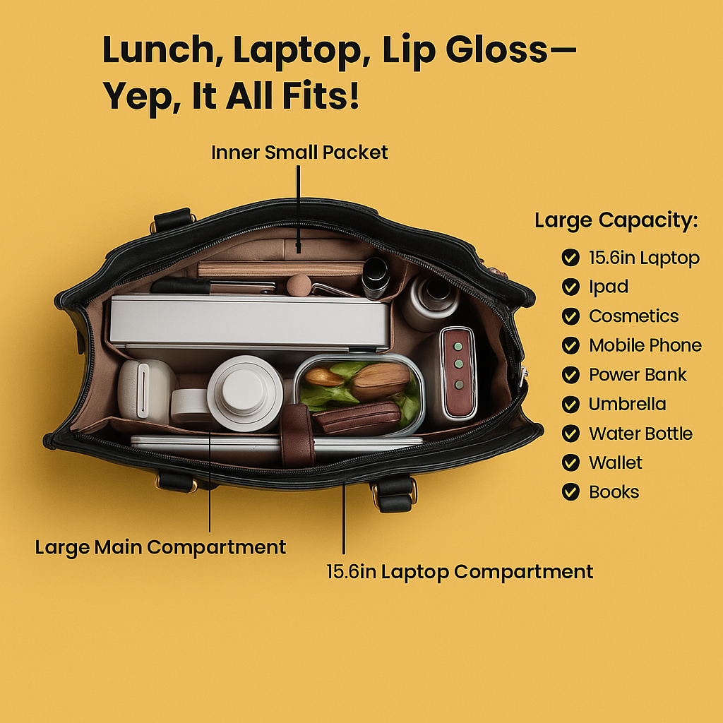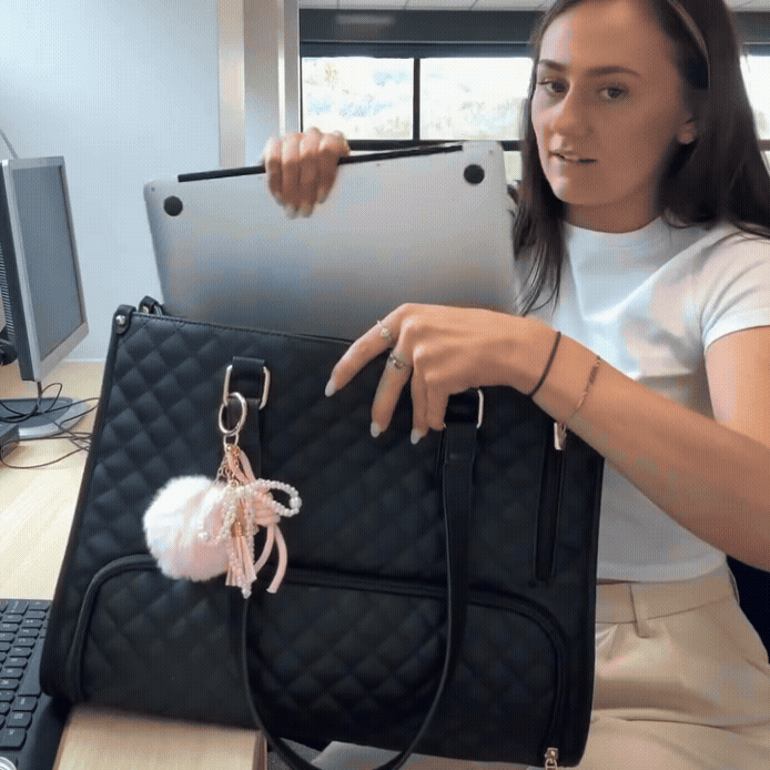 Dragging around three different bags – a laptop bag, a lunch box, and a purse – feels like prepping for a weekend getaway every single workday. Heavy, clunky, and let’s be honest… not cute.