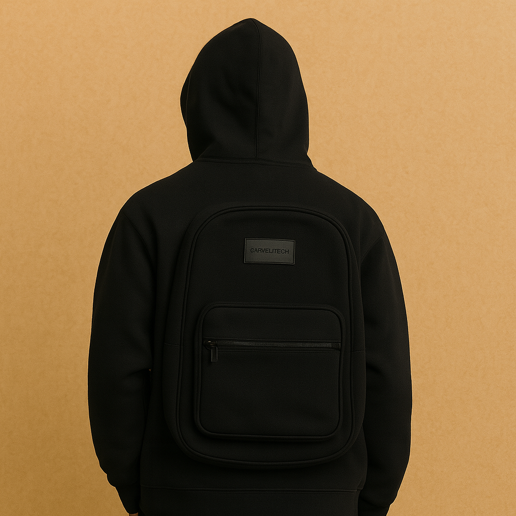 Boom – Verox. The hoodie with a secret backpack built right into the back. Big enough for clothes, gear, even your holiday stash 🍫.