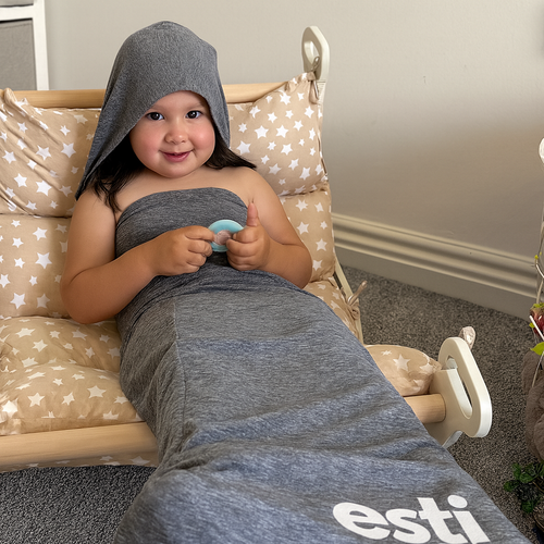 The soft, stretchy material is gentle on sensitive skin. Start by having them wear it for short periods during the day to get comfortable.