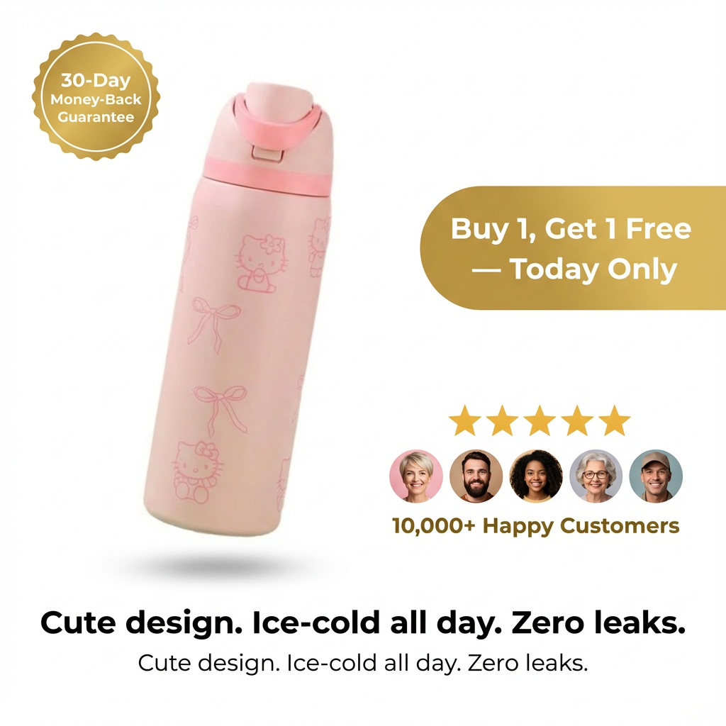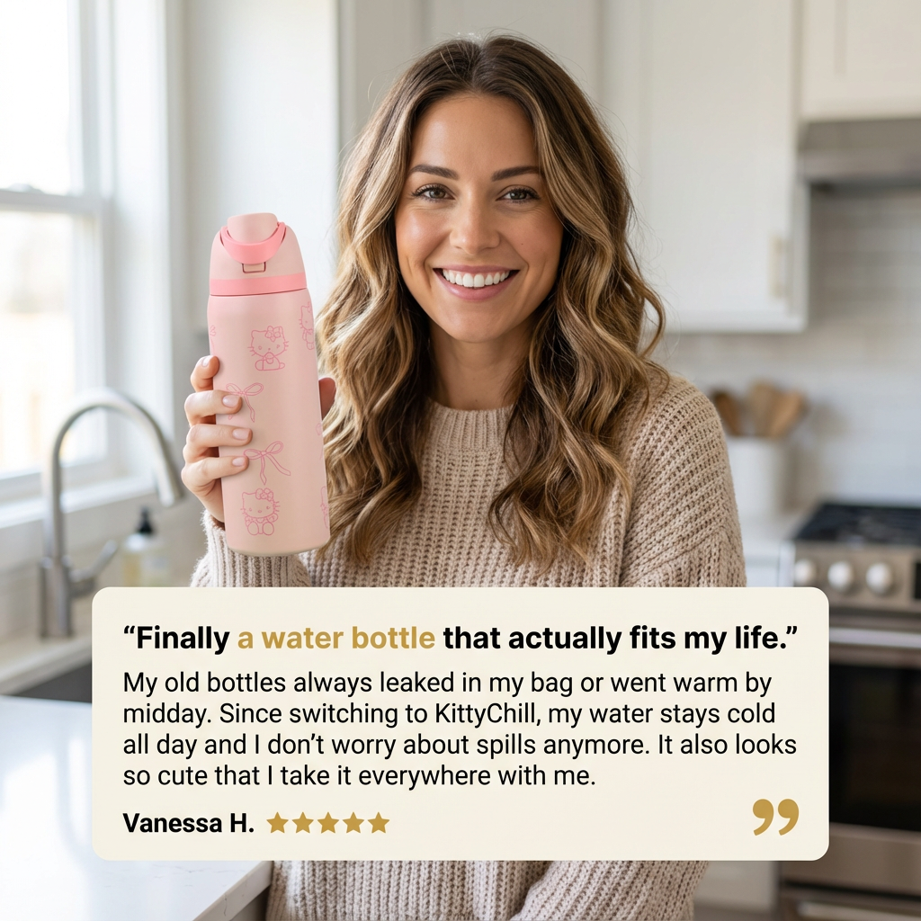 KittyChill combines vacuum-insulated stainless steel, a leak-locking straw lid, and official Hello Kitty artwork that won’t peel. It keeps drinks ice-cold all day while staying completely spill-free — giving you a bottle that finally matches your aesthetic, your lifestyle, and your goals.